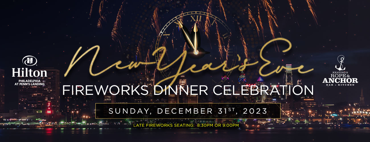 Reserve a seat all night long at Keating's Rope & Anchor Bar + Kitchen and enjoy hors d'ouevres, dinner, complimentary bar, dessert buffet, DJ and dancing, champagne toast and the best views of the fireworks in the city!